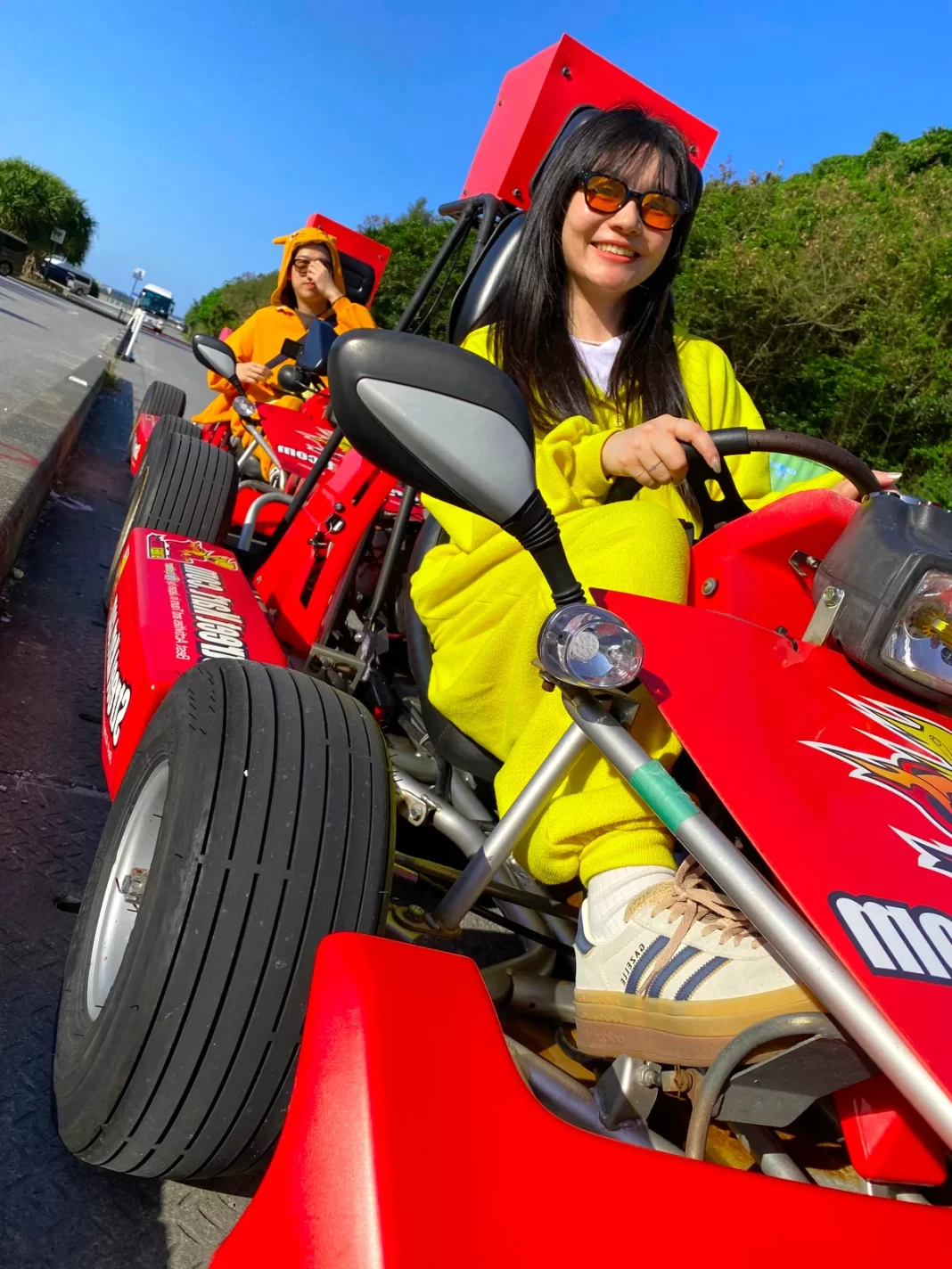 On routes through Naha city, there’s an exhilarating thrill in racing past the stone-paved streets around Shuri Castle from such a low vantage point. As you weave through the lively atmosphere of Kokusai Street, people in neighboring cars wave at you at red lights, and pedestrians point their smartphones your way. These small interactions become memories unique to a kart journey.